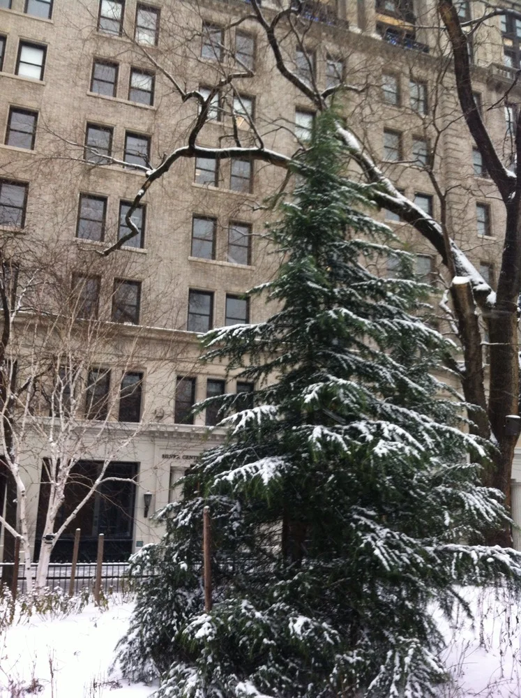 Perfect for a Saturday. Snow is falling.