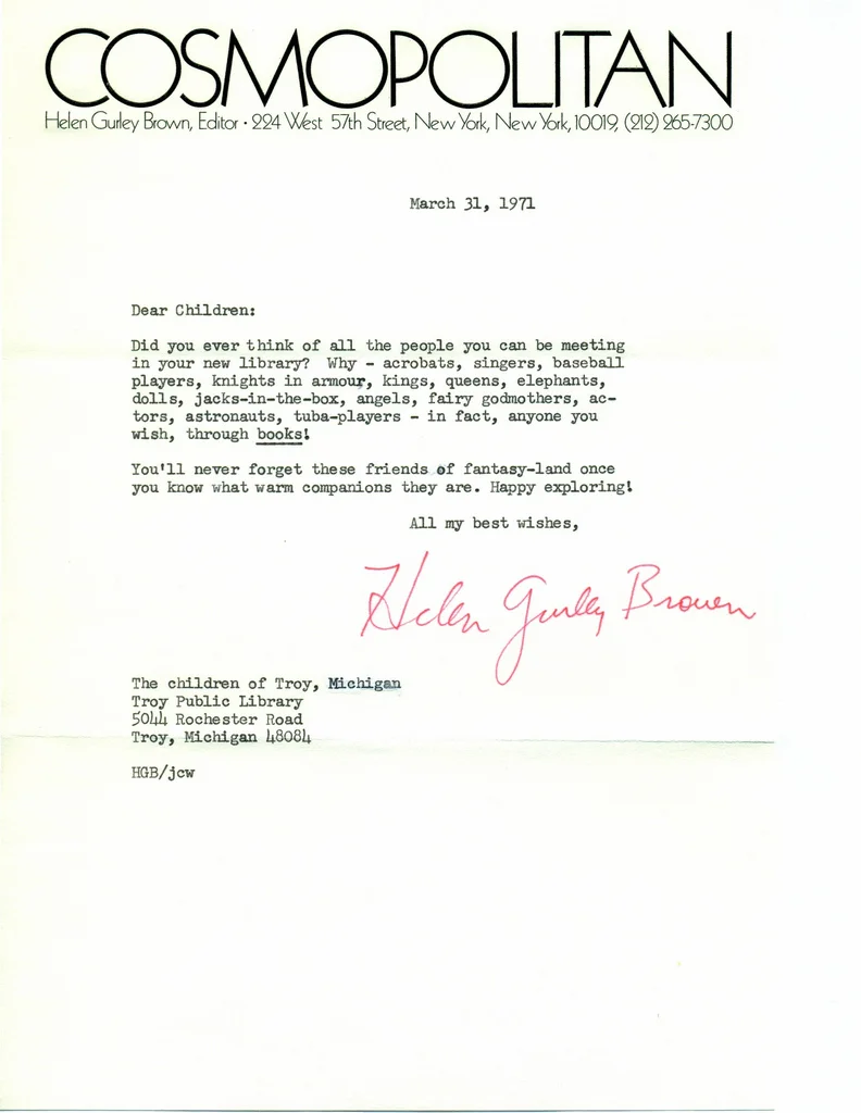 As I was scrolling through my daily reads, I came across a blog that published this letter from Helen Gurley Brown, Cosmopolitan's editor. She passed away on Monday.